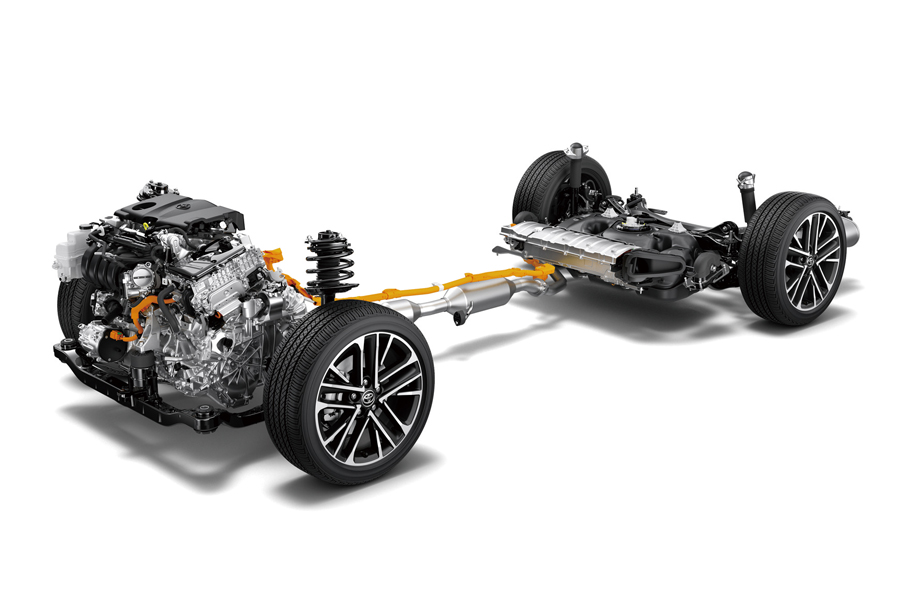 ناقل الحركة ذو المحور المجهز بموتورين و جهاز تقسيم الطاقة الحركية CVT تتميز كامري بناقل حركة مدمج وخفيف الوزن. ومع تحسين كفاءة نقل الطاقة من محرك الاحتراق والمحرك الكهربائي إلى العجلات، فإنها تسير بهدوء أكبر مع توفير أداء ممتاز للطاقة والاقتصاد