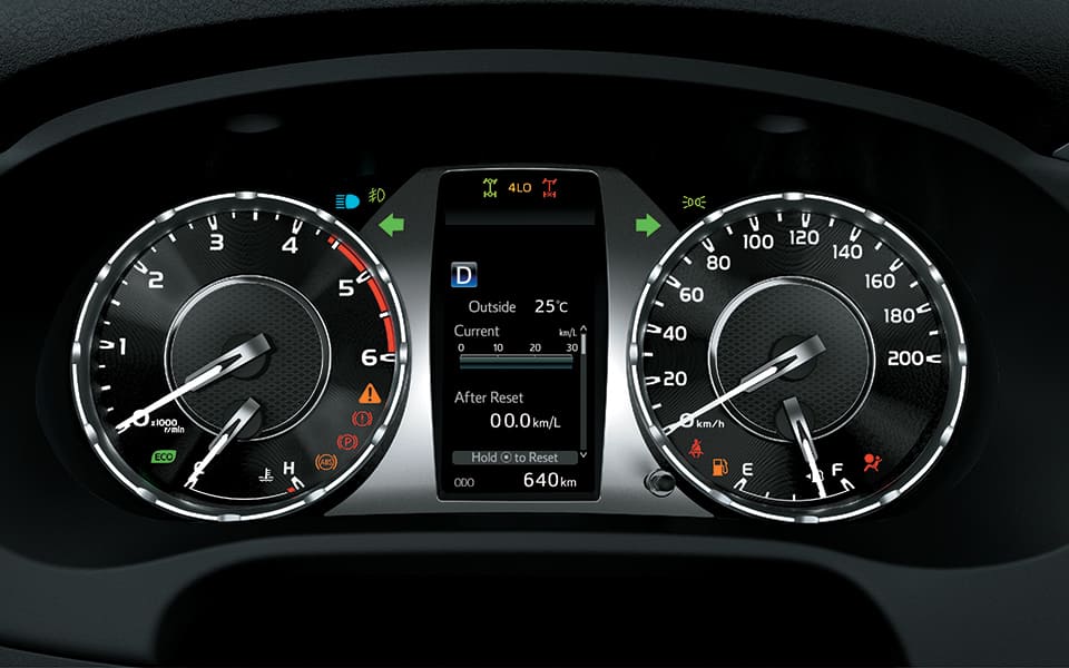 العدادات المدمجة تسهل قراءة العدادات وتتميز بشاشة عرض معلومات متعددة TFT (شريط ترانزستوري رقيق) ملوّنة مقاس 4,2 بوصة تزوّد السائق بنظرة سريعة عن المعلومات الحيوية الخاصة بالسيارة. ويوجد مؤشر قيادة اقتصادية لدعم القيادة الاقتصادية
