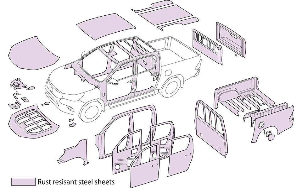 صفائح صلبة مقاومة للصدأ يسهم الاستخدام المكثف للصفائح الصلبة المضادة للصدأ ككسوة لهيكل السيارة وسطحها في زيادة متانتها وقوتها، مهما كانت الظروف قاسية
