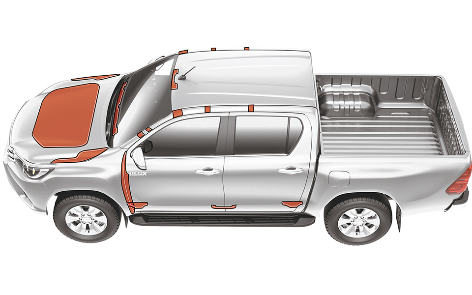 مواد امتصاص وعزل الصوت والاهتزاز يسهم موضع هذه المواد الاستراتيجي، الموجودة في أرضية السيارة وحجرة المحرك، في توفير رحلة هادئة