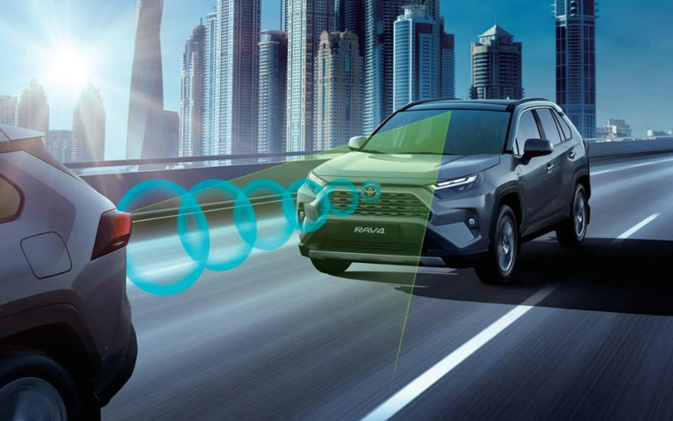 نظام تويوتا للأمان . يكتشف نظام PCS السيارات والمشاة أمام السيارة (نهارًا / ليلاً)، وراكبي الدراجات (نهارًا)، والسيارات والمشاة القادمين عند التقاطعات (نهارًا). يمكن أن يساعد السائقين على تجنب الاصطدامات وتخفيف الأضرار كلما زاد خطر الاصطدام بجسم تم اكتشافه.